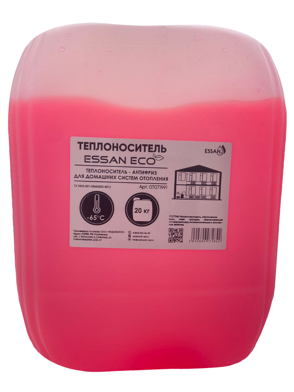 Теплоноситель для отопления ESSAN ECO (розовый) этиленгликоль -65°C 20 кг