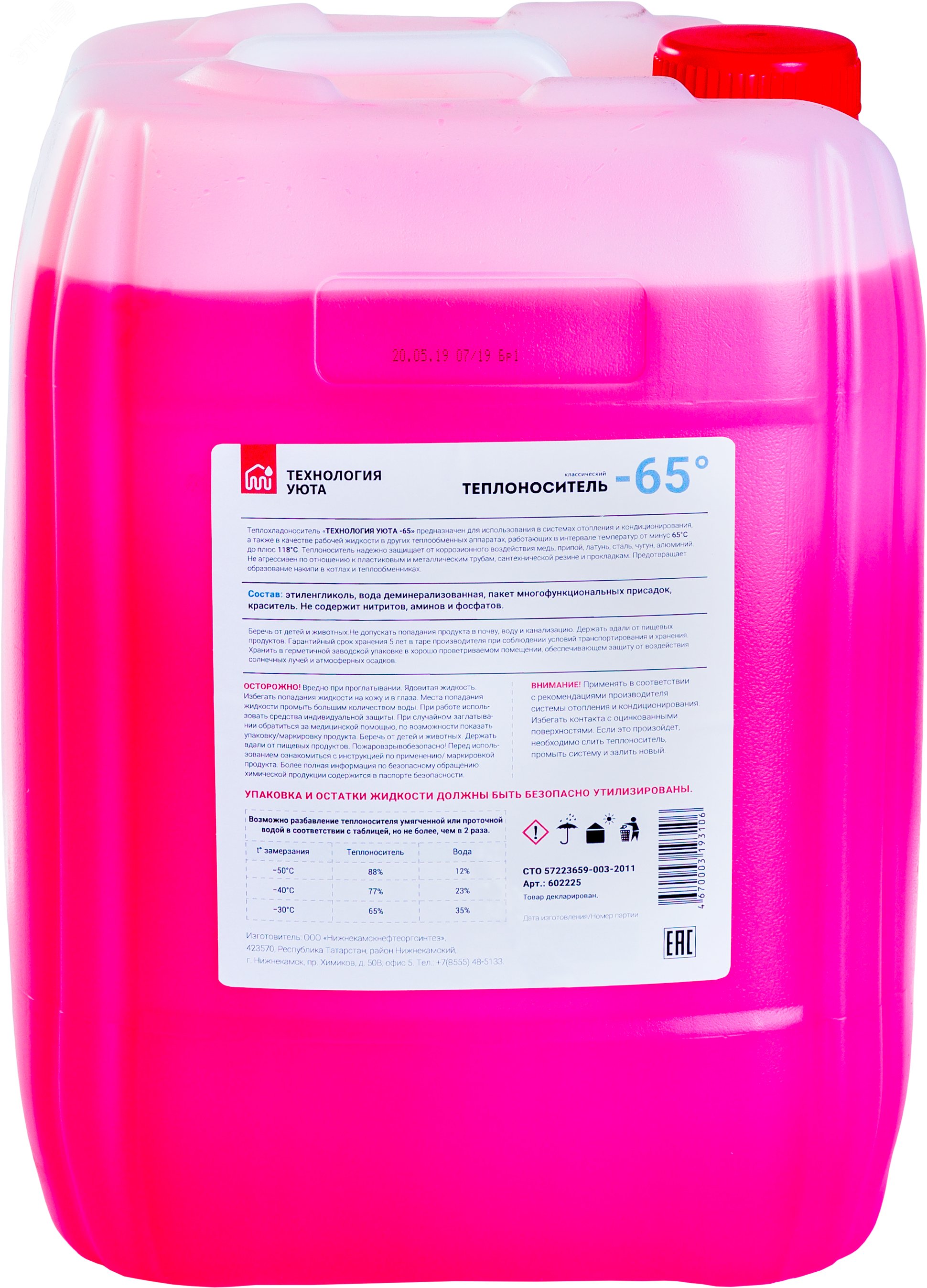 Теплоноситель для отопления THERMAGENT (розовый) этиленгликоль -65°С, 10 кг (77637)