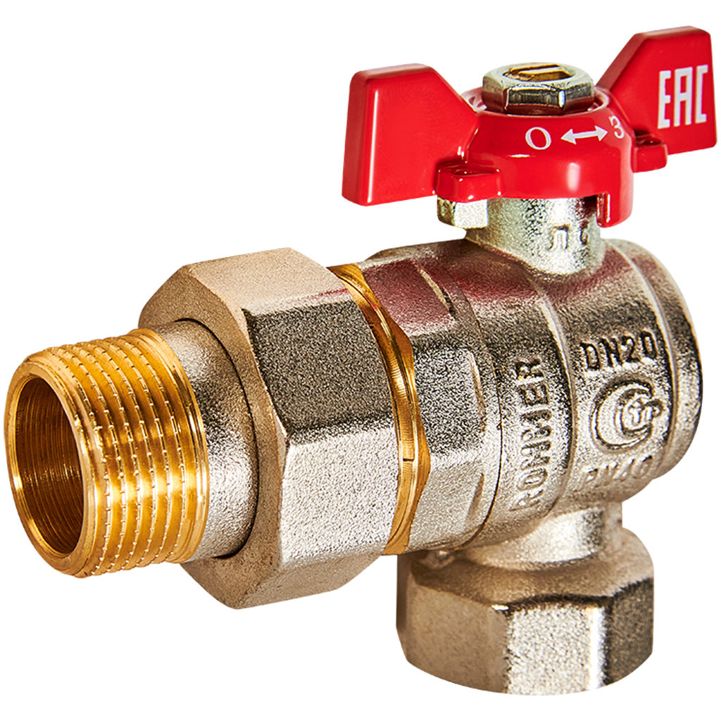 Кран шаровой с американкой угловой ROMMER бабочка 3/4" ВН NEW
