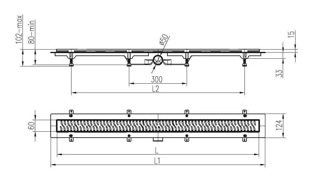 Душевой трап-лоток MCH Chudej нижний слив Ø40, рамка нерж, 750мм LINE серебро глянц