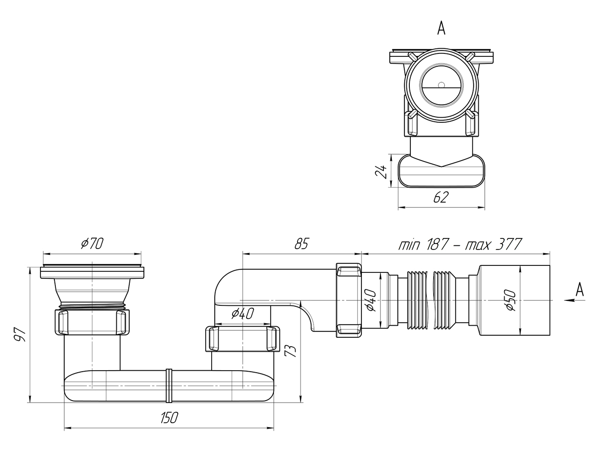 Сифон для душевого поддона пластиковый плоский АНИПЛАСТ E015 11/2"х40 с гофрой 40х50 выпуск нерж