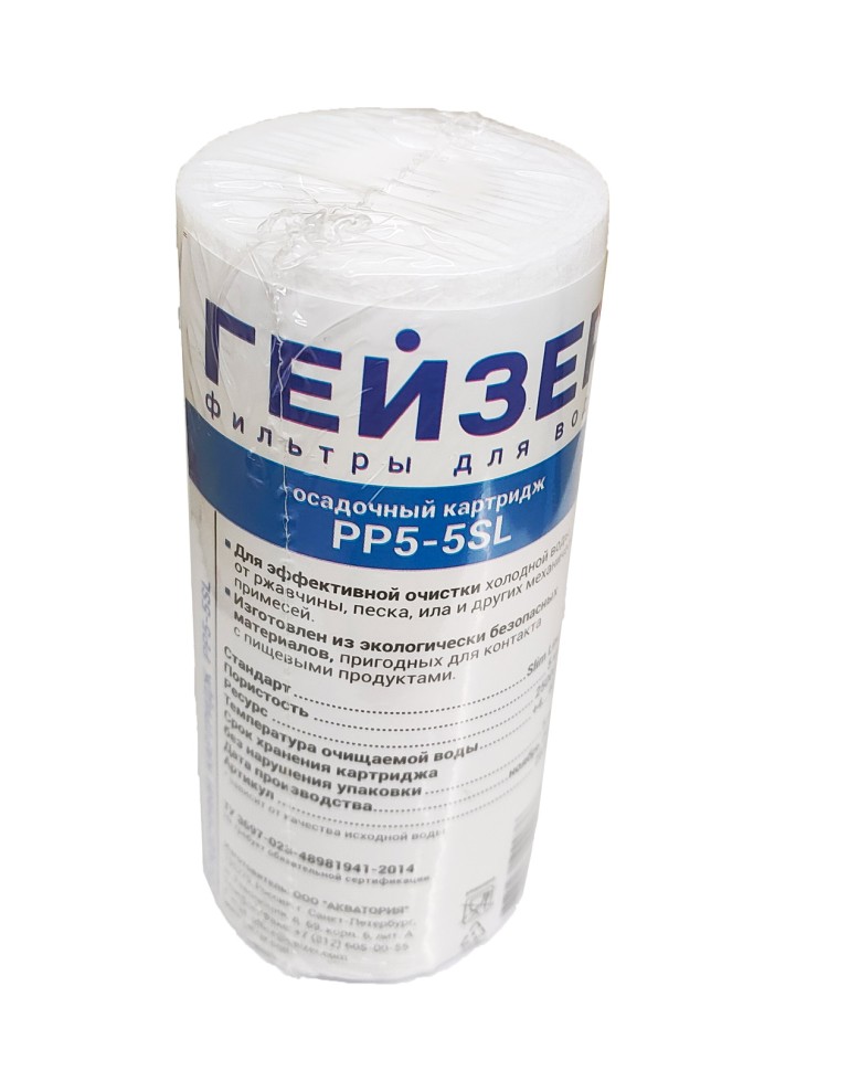 Картридж сменный полипропилен ГЕЙЗЕР PP5, для корпуса 5SL, 5 мкм, для механич. очистки