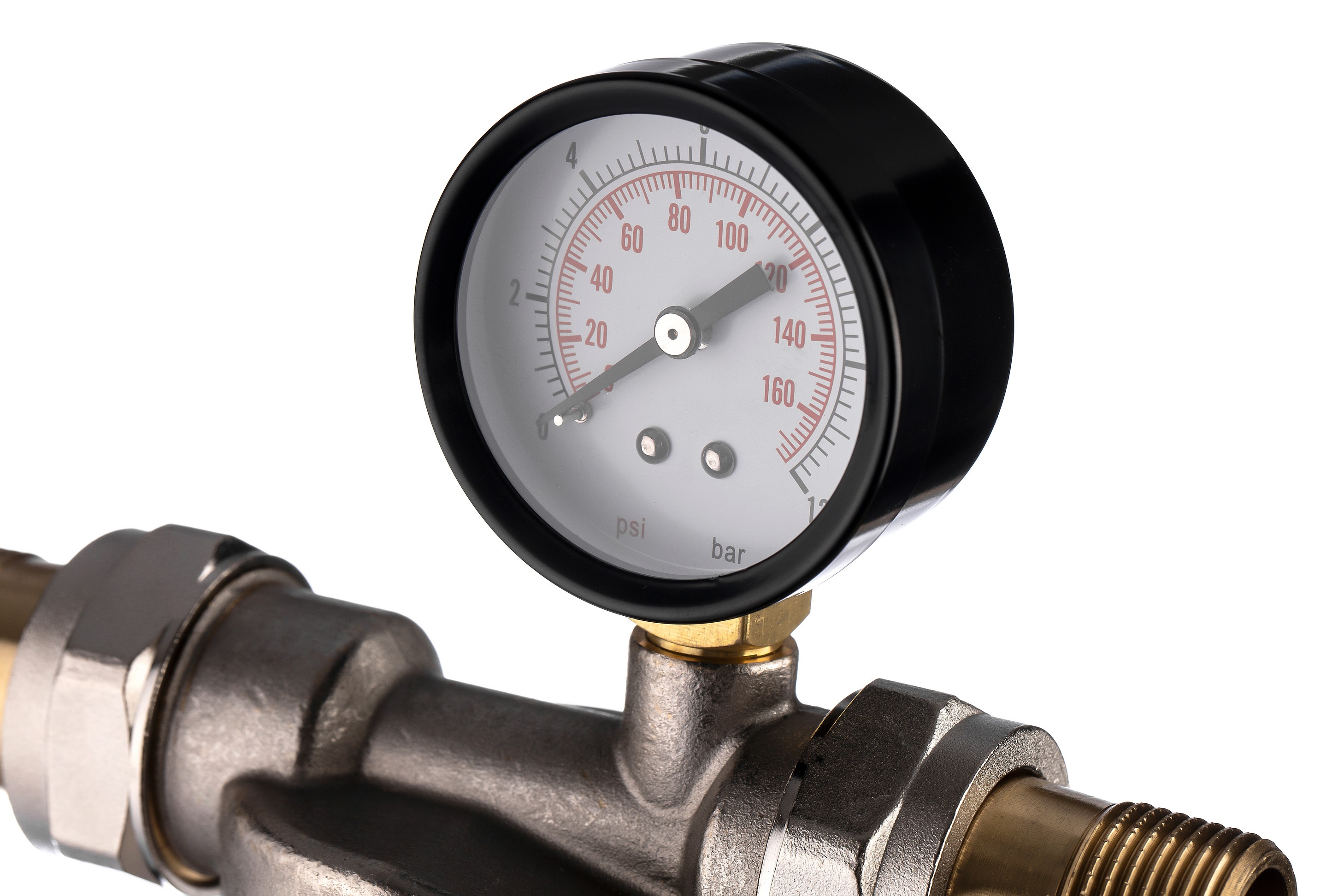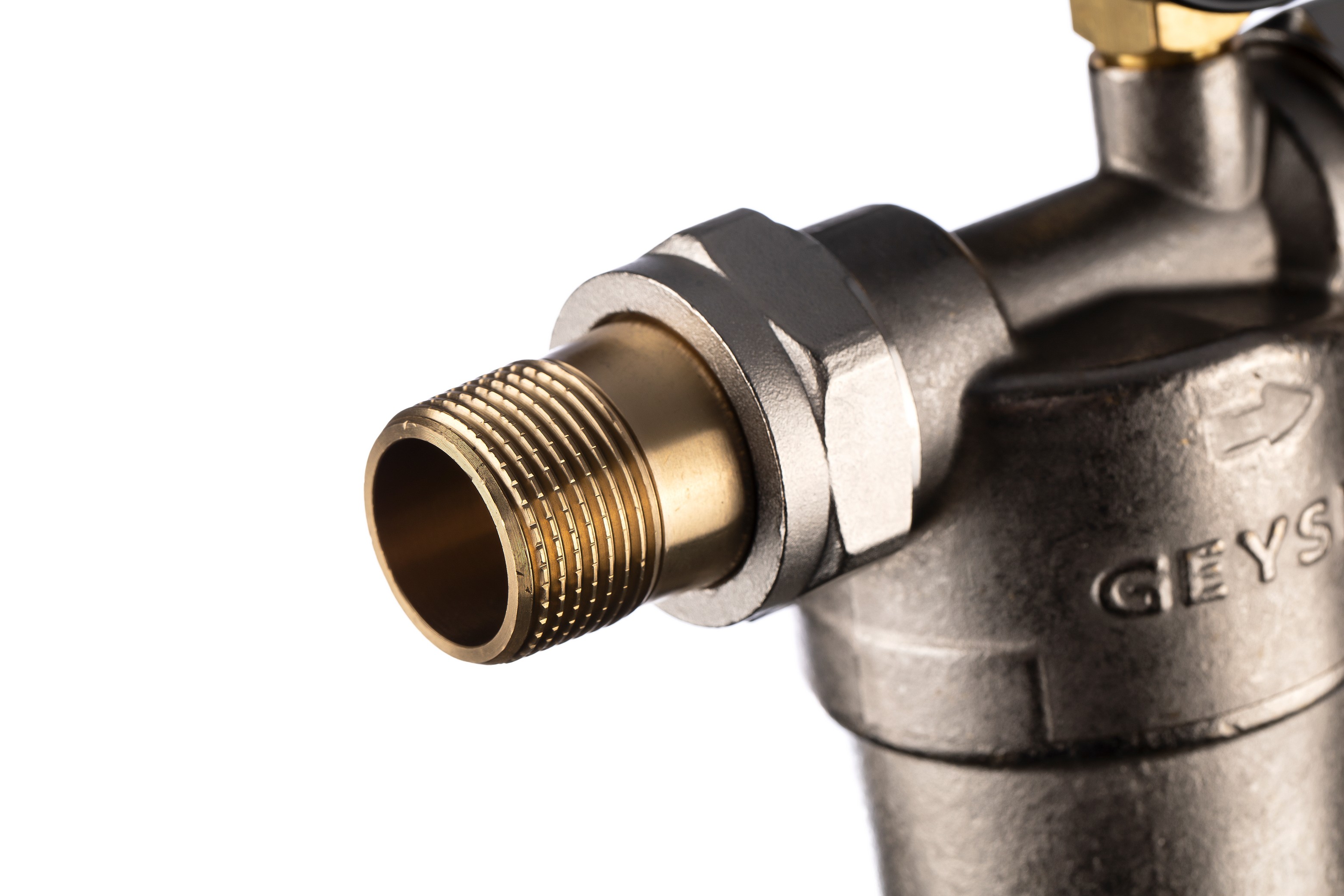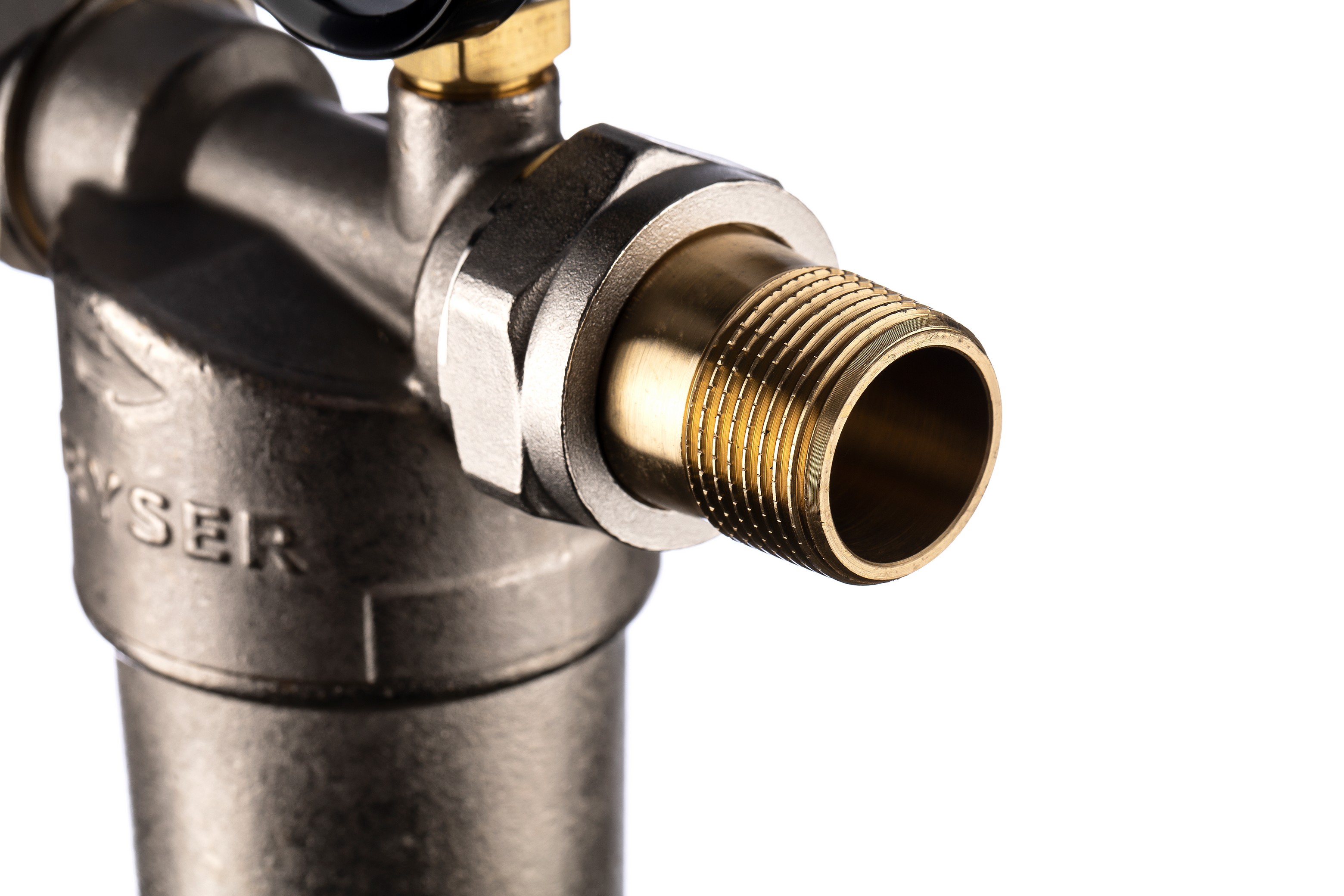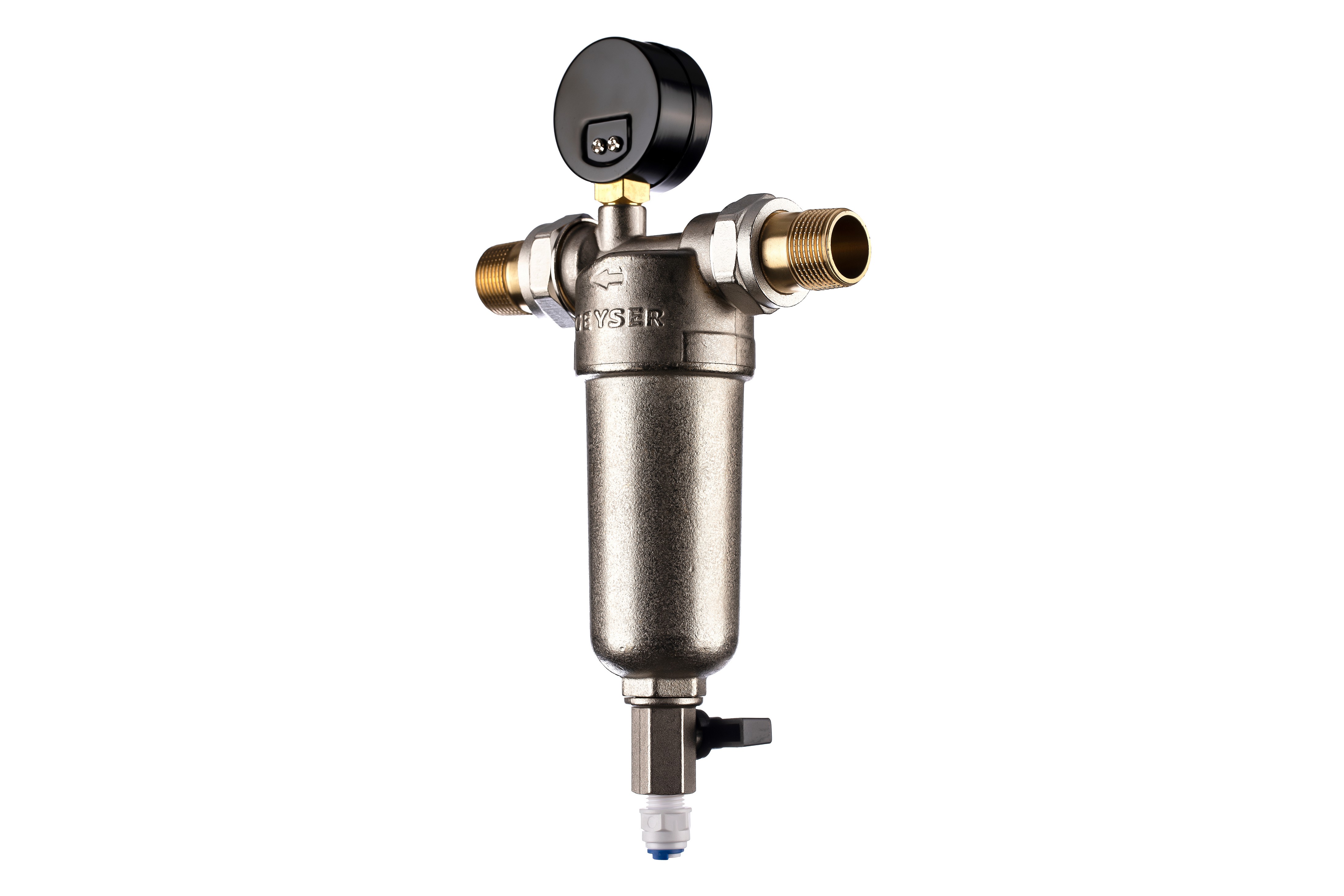 Фильтр промывной с манометром ГЕЙЗЕР БАСТИОН 122 Ø60 никель 3/4" АМ-АМ, 90 мкм, латунная колба