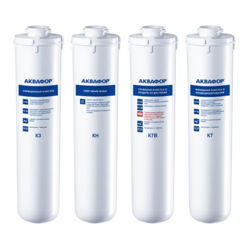 Система фильтрации четырехступенчатая АКВАФОР КРИСТАЛЛ КВАДРО ЭКО Н, сорбиционная (К3-КН-К7В-К7)